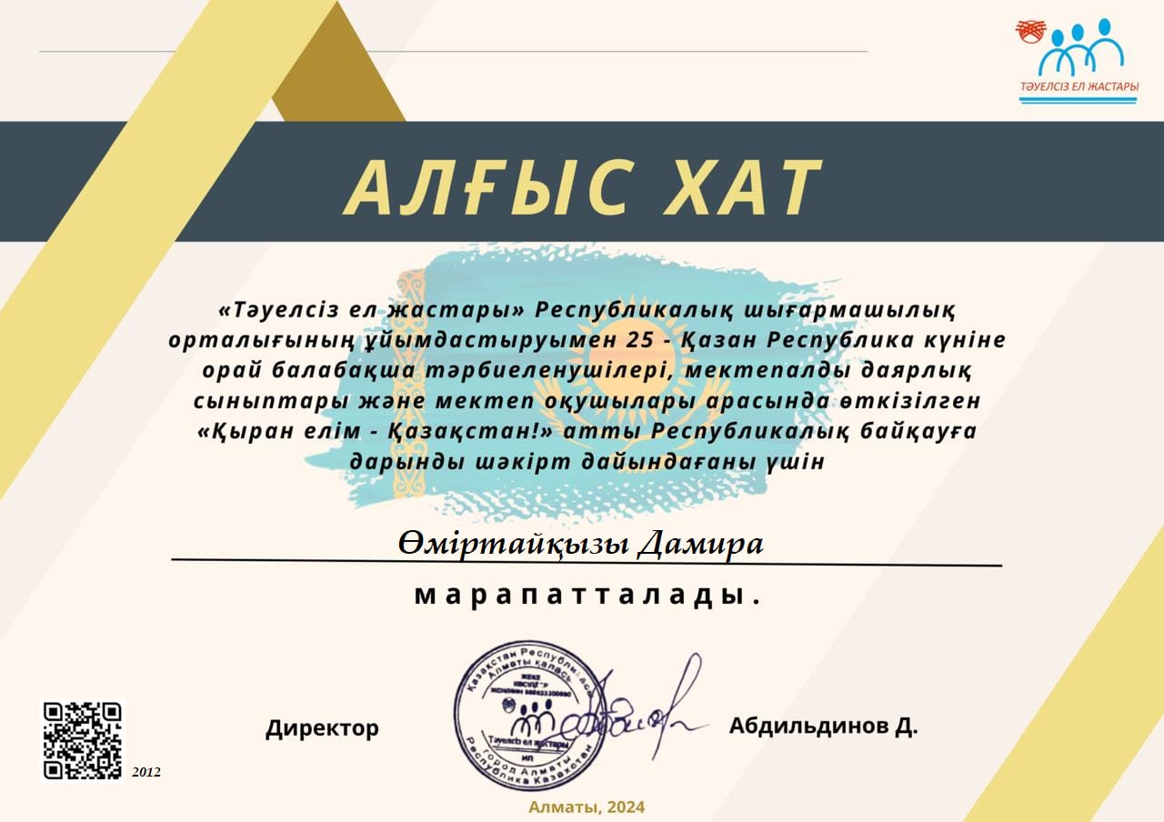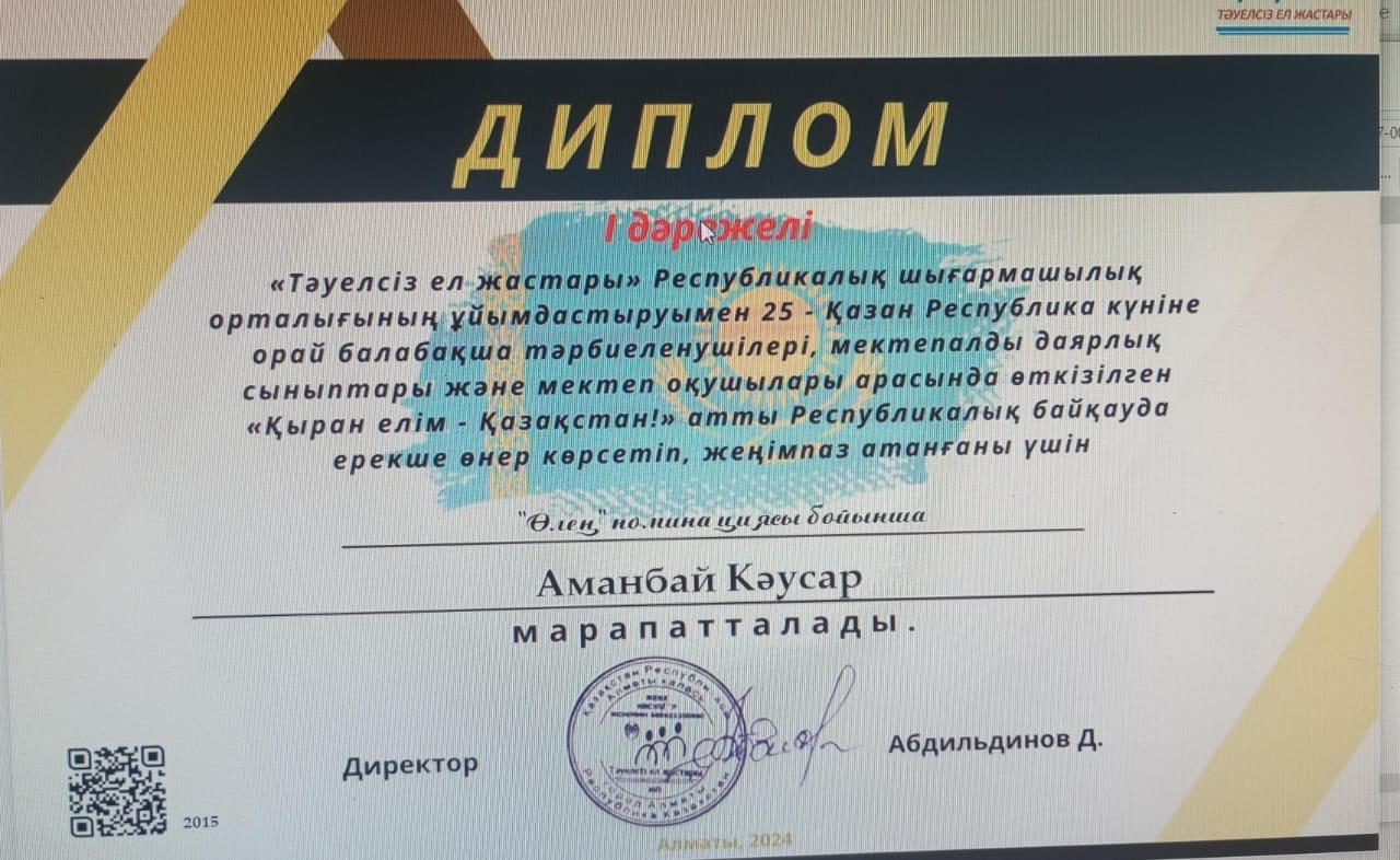 | 5 | Диплом Қызжан | |